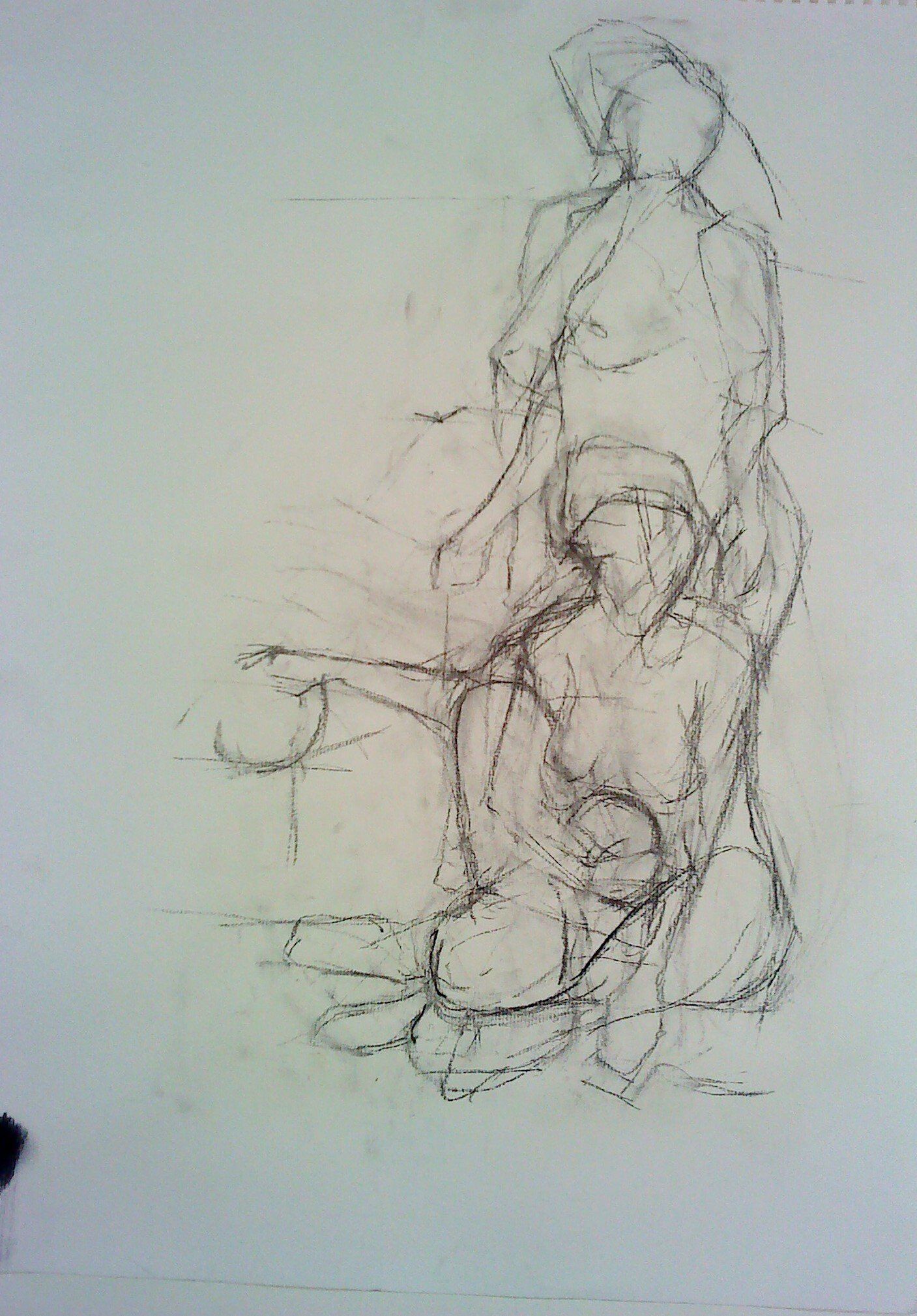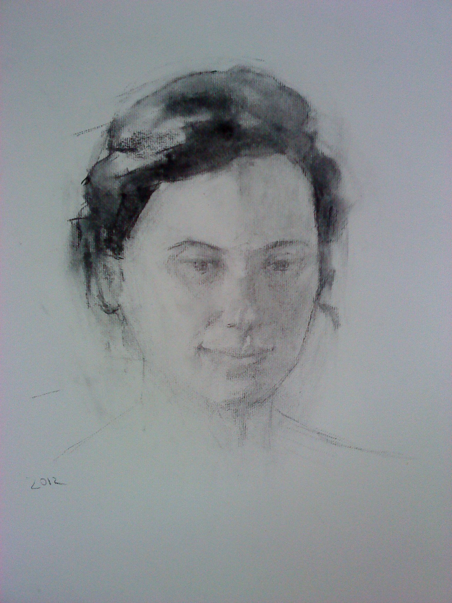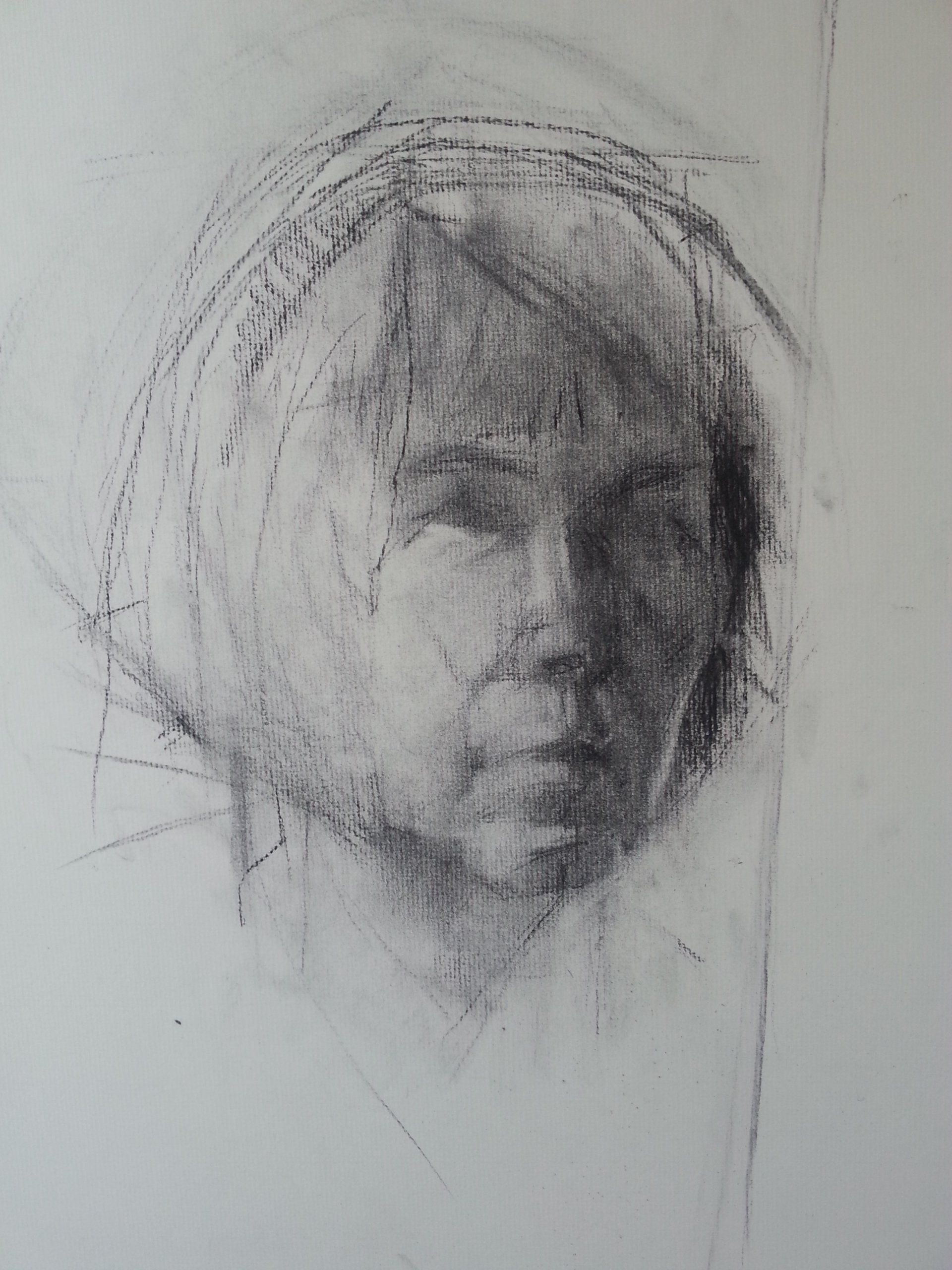 Self portrait, charcoal on papr. 2011, 40X18cm